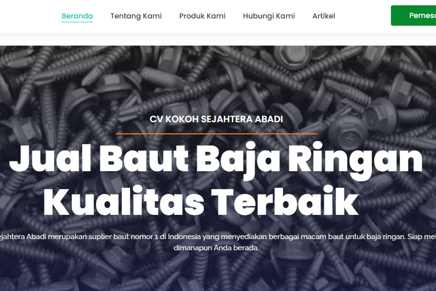 BautBajaRingan.com adalah situs milik sebuah pemasok/ penjual baut dan sekrup untuk konstruksi rangka baja ringan — dikelola oleh CV Kokoh Sejahtera Abadi.
